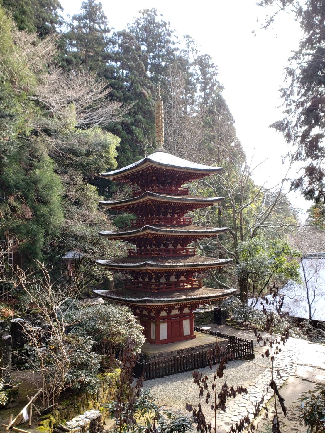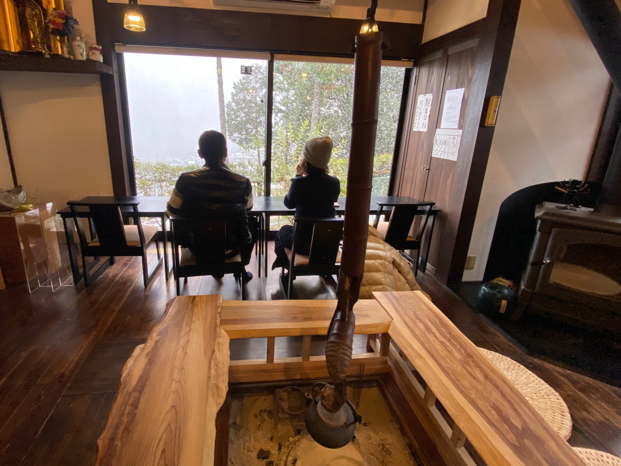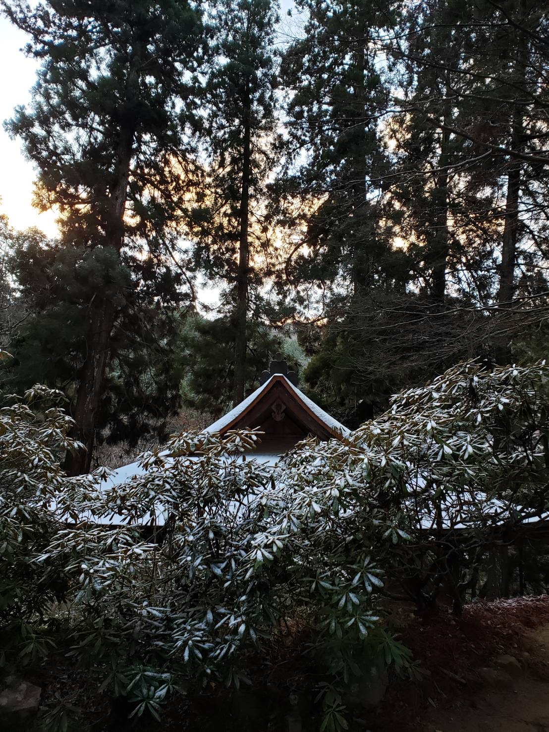 囲炉裏の間で雪降る室生山を見ながら コーヒーを飲んでられる姿が とっても素敵なお二人なのでした。 次回は必ず龍巡りいきましょうね! 室生寺では 真っ白になったお堂の屋根。 くっきりと屋根の形が浮かび上がって きれい〜♫