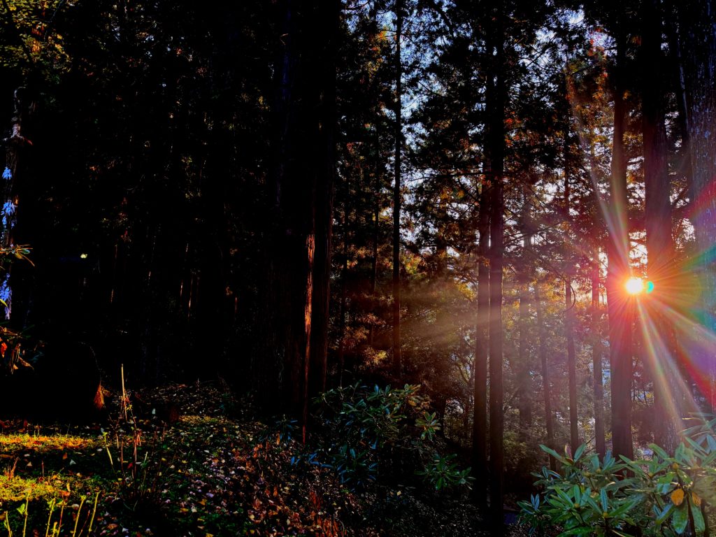境内に朝日が入ってきました!